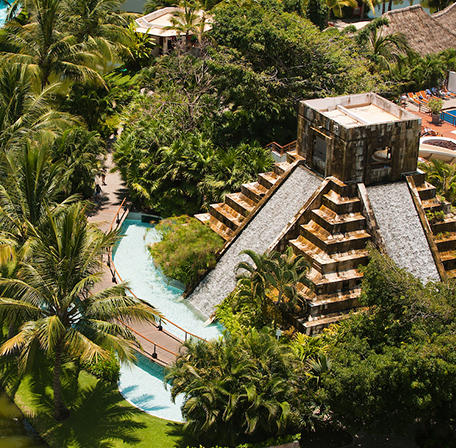 Perfect for kids, this Aqua Park includes the Mayan Pyramid Slide and multiple wave pools.